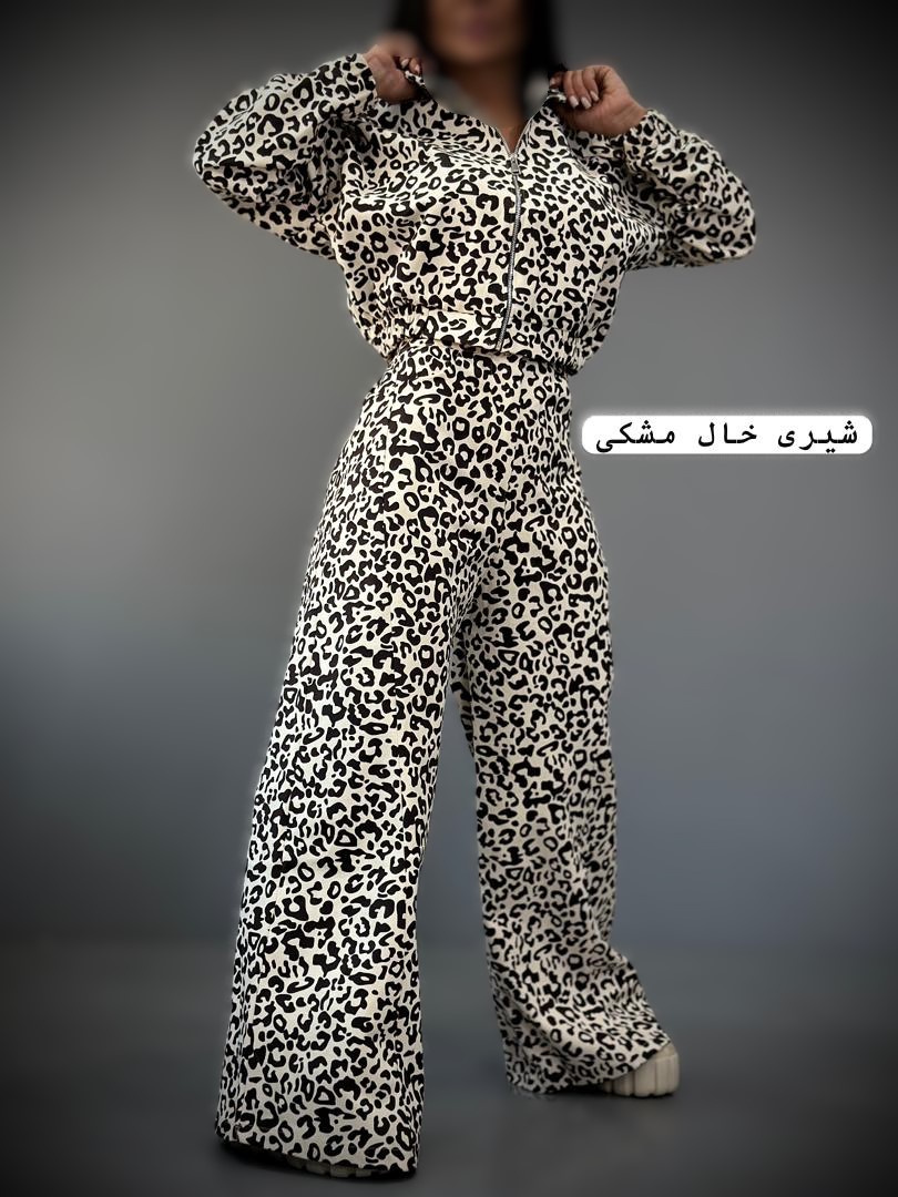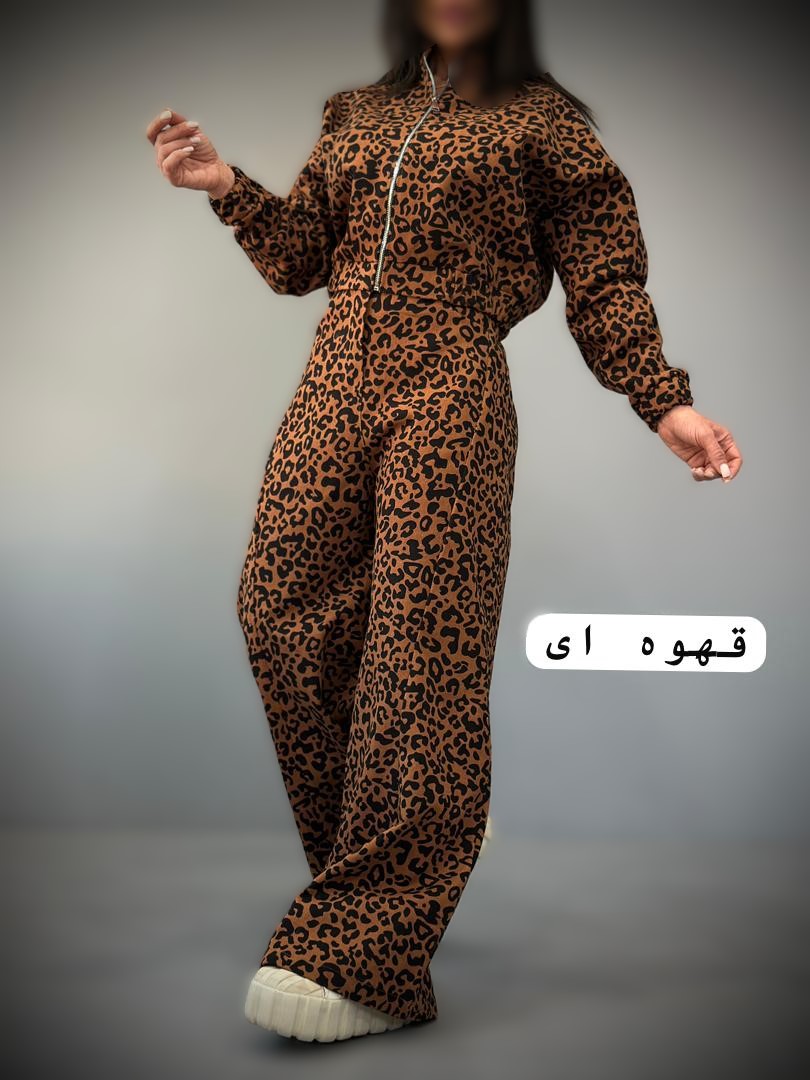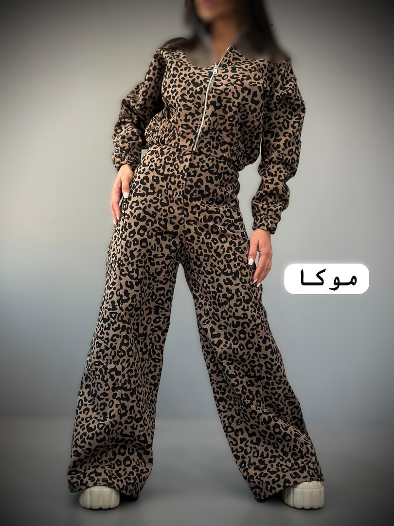بامبر شلوار پلنگی کتان ضخیم